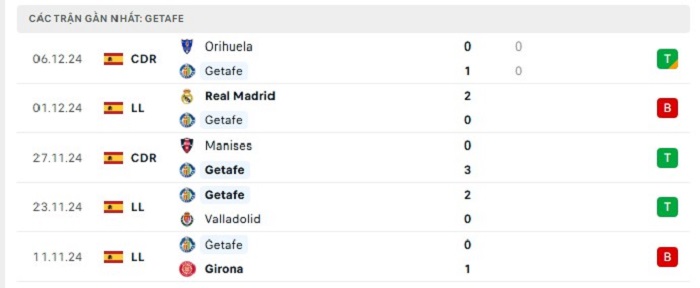 - Phong độ Getafe