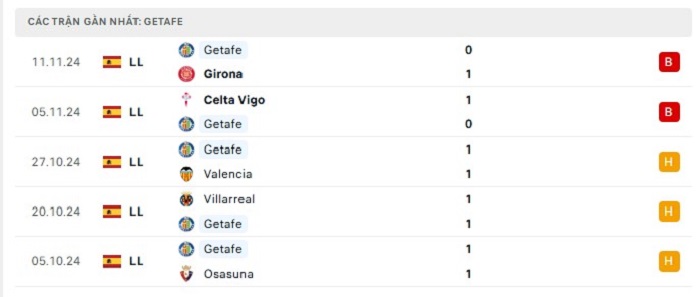 • Phong độ Getafe