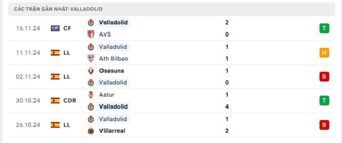 • Phong độ Real Valladolid
