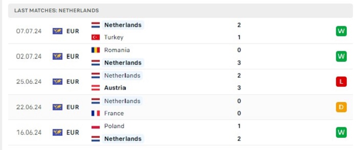 Thống kê có thể thấy được 3 trong 5 lần gặp nhau của hai đội trước đây có tỷ lệ ghi bàn từ 3 bàn trở lên, điều này cũng đã phần nào thấy được lối chơi của hai đội khá phóng thoáng. Hàng công của Hà Lan đang thi đấu ổn định mặc dù hàng thủ của họ cũng không phải là có sự chắc chắn tại Euro 2024 này, do đó mà có thể kỳ vọng vào một thế trận bùng nổ về mặt tỷ số của cả hai đội ở lần gặp nhau sắp tới.