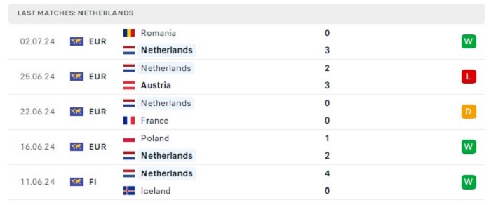 Phong độ gần đây Hà Lan vs Thổ Nhĩ Kỳ