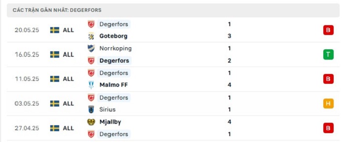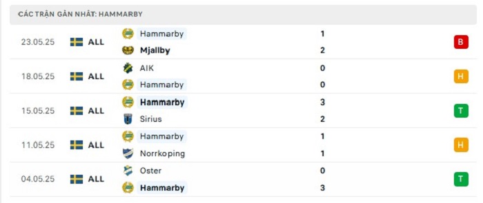 Phong độ gần đây Hammarby vs Degerfors