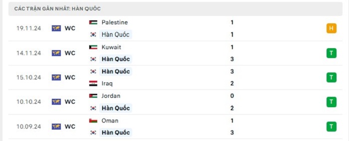 Phong độ gần đây Hàn Quốc vs Oman