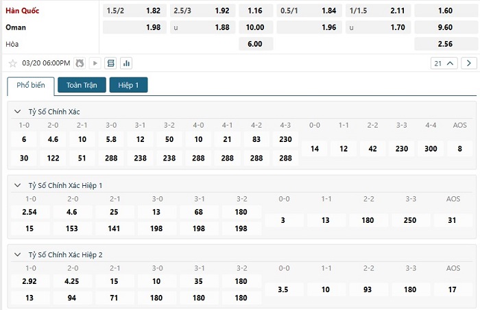Soi kèo tỷ số Hàn Quốc vs Oman
