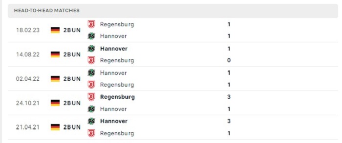 Thống kê có thể thấy được chỉ có 2 trong 8 lần gặp nhau của Hannover 96  và Jahn Regensburg có tỷ số ghi được từ 3 bàn trở lên, điều này cũng đã phần nào thấy được lối chơi của hai đội cũng khá chắc chắn từ trước. Trận đấu ra quân của Hannover 96  và Jahn Regensburg sắp tới cũng sẽ khó có thể xuất hiện được nhiều bàn thắng khi mà hàng công của đội khách cũng không có được khả năng săn bàn hiệu quả nhất của mình.