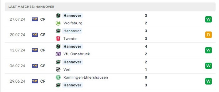 • Phong độ Hannover 96