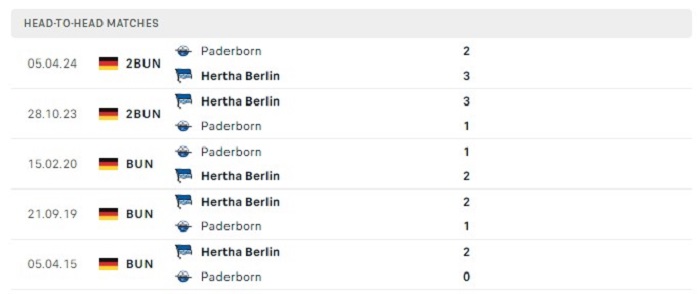 Quá khứ cũng đang đứng về phía Hertha Berlin trong những lần gặp nhau của hai đội, điều này thấy được khi họ có được tới 7 trận thắng kèo châu Âu trước Paderborn 07 trong khi chỉ hoà 1 và thua 2 trước đối thủ này. Lợi thế về mặt sân nhà kèm theo đó là tinh thần có được trong quá khứ hoàn toàn có thể giúp Hertha Berlin có được sự khởi đầu tốt đẹp cho mình ở trận ra quân sắp tới của giải đấu số 2 nước Đức mùa này.