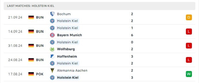 Là một tân binh vừa mới lên hạng Holstein Kiel đang cho thấy việc gặp rất nhiều khó khăn, thật vậy khi họ chỉ mới có được vỏn vẹn 1 điểm qua 4 vòng đấu của mình và đang phải xếp ở vị trí cuối bảng xếp hạng. Bên kia sân với Eintracht Frankfurt họ lại đang có được những thành công của mình khi nằm trong top 4 dẫn đầu giải đấu mùa này, Eintracht Frankfurt đã có cho mình được 3 trận thắng và mới chỉ để thua 1 qua 4 vòng đấu. Tuy nhiên có thể hàng công của họ ở mùa giải không mạnh khi mới chỉ ghi được 7 thằng từ đầu mùa giải tới nay.