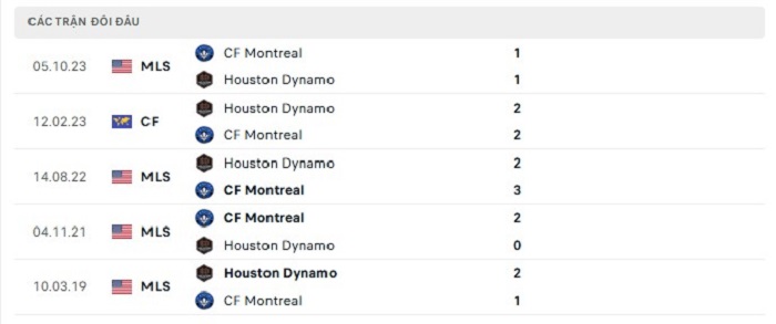 Lịch sử đối đầu của Houston Dynamo vs Montreal Impact