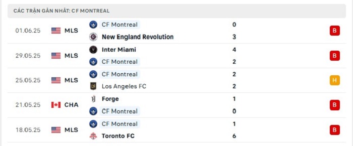 Phong độ gần đây Houston Dynamo vs Montreal Impact