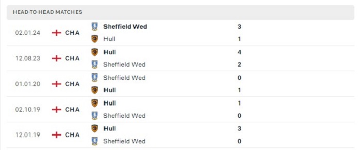 Phong độ gần đây Hull City vs Sheffield Wednesday