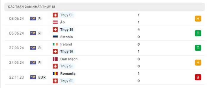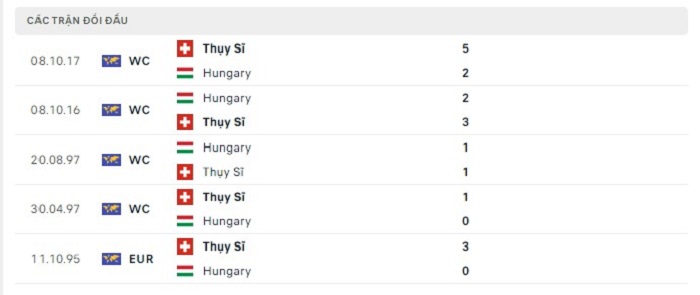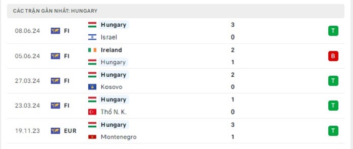 Phong độ gần đây Hungary vs Thụy Sĩ