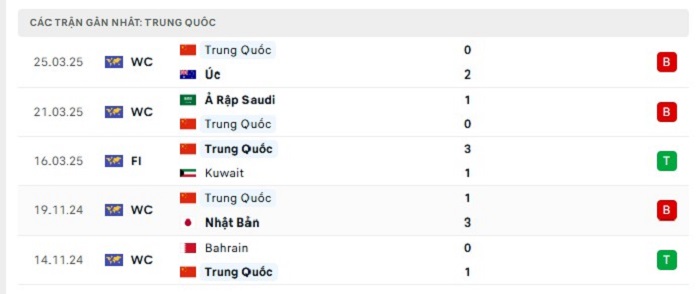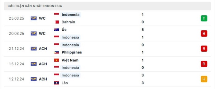 Phong độ gần đây Indonesia vs Trung Quốc