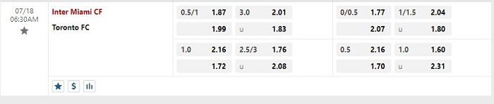 Bảng tỷ lệ kèo bóng đá trận đấu Inter Miami vs Toronto FC
