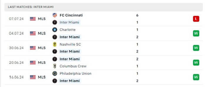- Phong độ Inter Miami