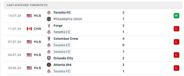 - Phong độ Toronto FC