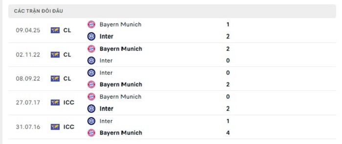 Lịch sử đối đầu của Inter Milan vs Bayern Munich