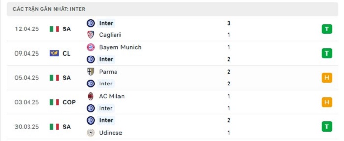 Phong độ gần đây Inter Milan vs Bayern Munich