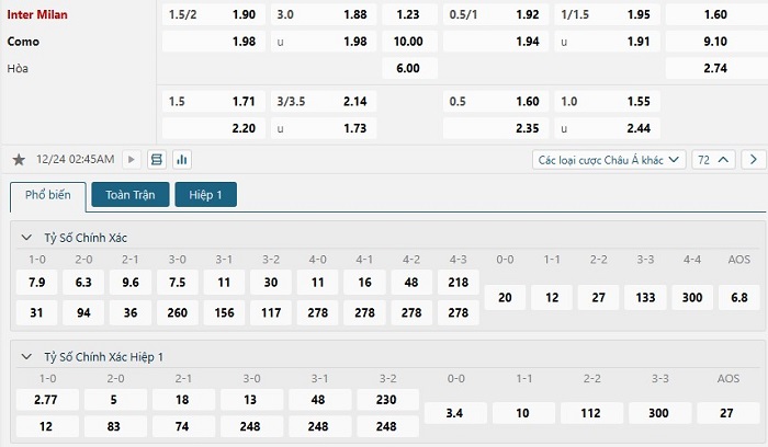 Không bất ngờ khi mà Inter Milan đang là cái tên được đánh giá vượt trội hơn so với Como trên phương diện kèo châu Á, điều này cũng có thể hiểu được bởi thực lực và sự chênh lệch của hai đội ở đấu trường Serie A đang là rất lớn, bên cạnh đó với Inter Milan hiện tại họ có được điểm tựa về mặt sân nhà cũng như quyết tâm cho việc bảo vệ ngôi vô địch của mình tại giải đấu, do vậy mà một chiến thắng cách biệt về mặt tỷ số với đội bóng thành Milan trước Como cũng không phải là nhiệm vụ ngoài sức của họ.