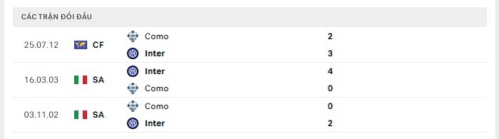 Bảng  bóng đá trận đấu Inter Milan vs Como