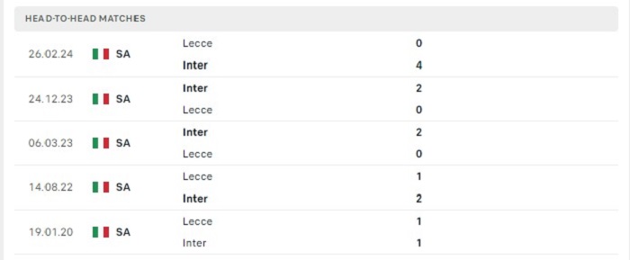 Sức mạnh vượt trội của Inter Milan trong quá khứ cũng đã được thể hiện, thật vậy bởi trong 10 lần gặp nhau gần đây Inter Milan có được 7 chiến thắng theo mốc kèo châu Âu của trận trong khi chỉ để thua 1 trận đấu, phong độ sân nhà của Inter Milan cũng thể hiện tốt khi năng lực của họ vẫn được đánh giá cao cho việc cạnh tranh danh hiệu vô địch ở mùa giải này, bởi vậy mà một thắng lợi trước Lecce ở vòng đấu thứ 2 của Serie A này với Inter Milan là điều mà họ đang hướng tới.