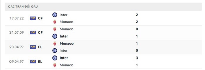 Bảng bóng đá trận đấu Inter Milan vs Monaco