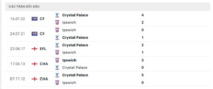 Trong quá khứ Ipswich Town cũng từng gặp không ít những khó khăn trước Crystal Palace, cụ thể là 10 lần gặp nhau gần đây nhất giữa hai đội thì Ipswich Town chỉ thắng 3, hoà 1 và thua 6 trận đấu theo mốc kèo châu Âu của trận đấu. Sau khoảng thời gian thi đấu khởi sắc hơn thì phong độ của Ipswich Town lại đang đi xuống lại trong khi với đội khách họ có được những cải thiện tốt hơn thời gian này, vì vậy mà khả năng thắng kèo châu Âu của Crystal Palace vẫn là khả thi.