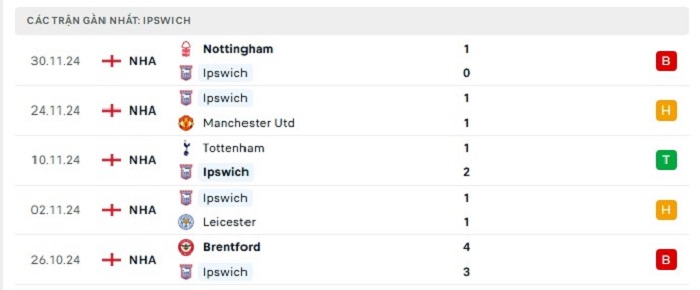 Phong độ gần đây Ipswich Town vs Crystal Palace
