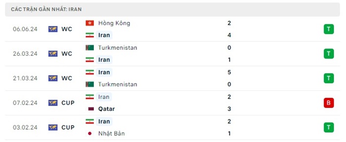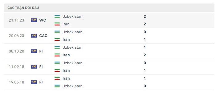 Phong độ gần đây Iran vs Uzebekistan
