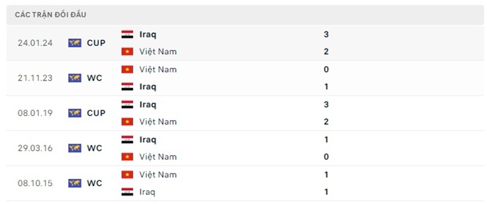 Thống kê có thể thấy được có tới 4 trong 6 lần gặp nhau giữa Iraq và Việt Nam trong quá khứ chỉ có khả năng ghi bàn từ 2 trở xuống. Bên cạnh đó với Việt Nam sắp tới cần phải đặt mục tiêu chắc chắn hơn rất nhiều thời điểm này, bên cạnh đó với Iraq họ có khả năng ghi bàn cũng không phải quá ấn tượng tại giải đấu, vì vậy mà trận đấu sắp tới sẽ khó có thể xuất hiện nhiều bàn thắng ghi được.
