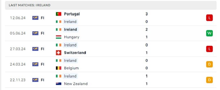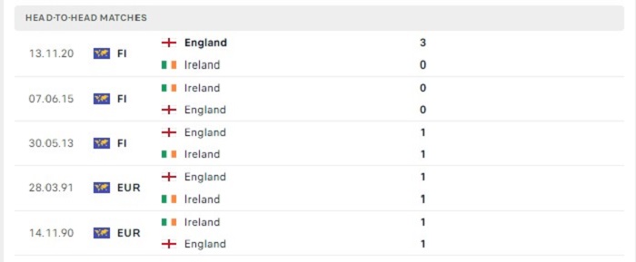 Tỷ lệ ghi bàn ở những lần gặp nhau của Ireland và Anh cũng không phải là cao, cụ thể là 4 trong 5 trận gặp nhau của hai đội chỉ có từ 2 bàn thắng ghi được trở xuống, trong 4 trận hoà của hai đội thì có tới 3 trận đấu khép lại với tỷ số chung cuộc hoà 1-1 cũng có thể thấy được sự thận trọng trong lối chơi của cả hai đội, bởi vậy mà khó có thể tin tưởng vào khả năng ghi được nhiều bàn thắng của hai đội trong trận đối đầu sắp tới.