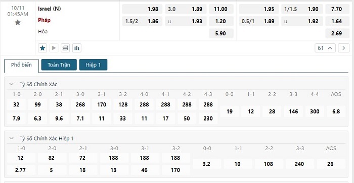 Soi kèo châu Á, kèo chấp Israel vs Pháp