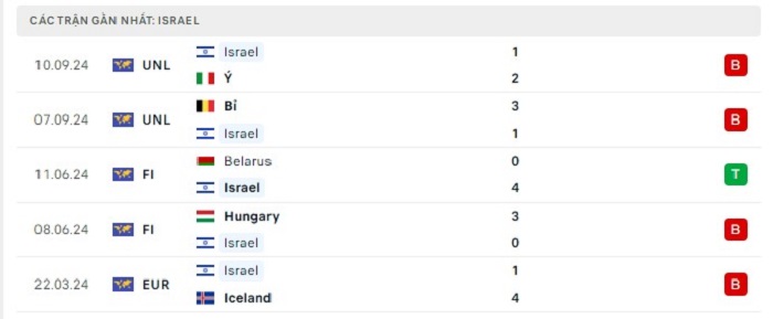 Phong độ gần đây Israel vs Pháp