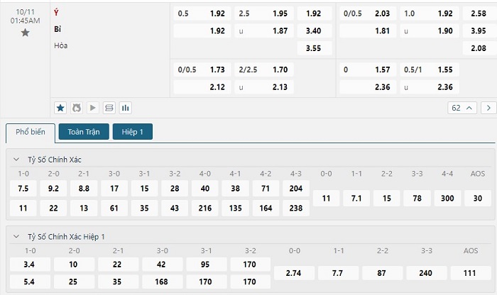 - Chọn Italia -1/2 (Full-Time)