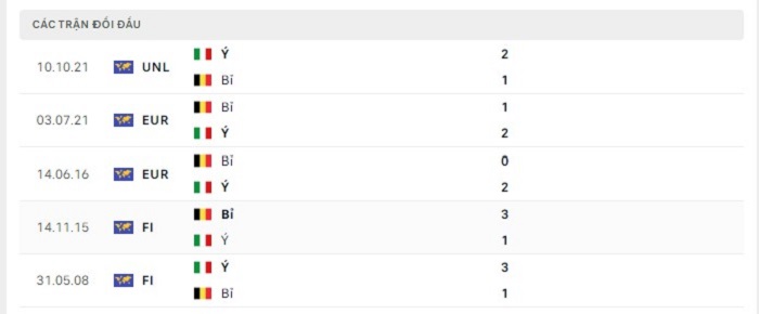Quá khứ cũng đang đứng về phía Italia trong những lần gặp Bỉ trước đây, cụ thể là 5 trận gặp nhau trước đây của hai đội Italia có tới 4 trận thắng kèo châu Âu cả trận trong khi chỉ để thua 1 trận đấu, điều này cũng có thể nhận thấy được những thành công rất lớn của Italia trước đối thủ này trước đây, bởi vậy mà với phong độ và khả năng hiện tại của mình việc Italia có được một thắng lợi theo mốc kèo châu Âu cũng là trong tầm tay của họ.