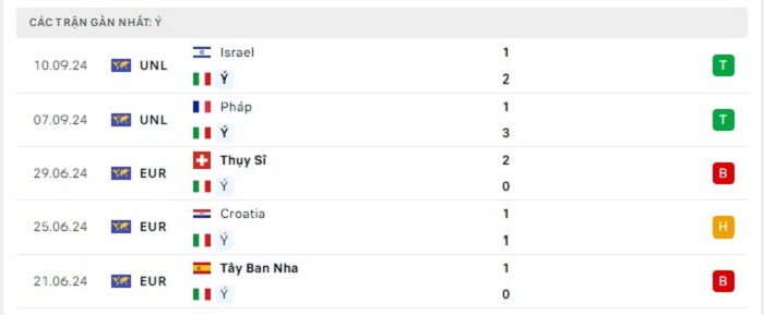 Phong độ gần đây Italia vs Bỉ