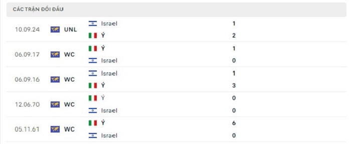 Trong quá khứ những trận gặp nhau giứa Italia và Israel vốn cũng có được tỷ lệ ghi bàn tương đối tốt, cụ thể là 5 trận gặp nhau trước đây có tới 3 trận đấu của hai đội có được tỷ lệ ghi bàn tương đối cao. Israel đang thể hiện được khả năng ghi bàn không quá tệ nhưng chất lượng hàng thủ của họ lại không được thực sự tốt, chính bởi vậy mà có thể kỳ vọng tới một trận đấu bùng nổ về mặt tỷ số của cả hai đội.