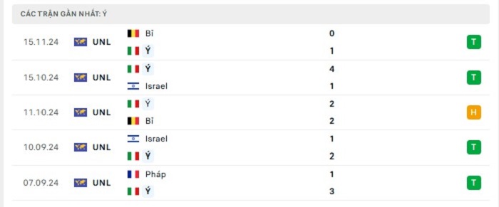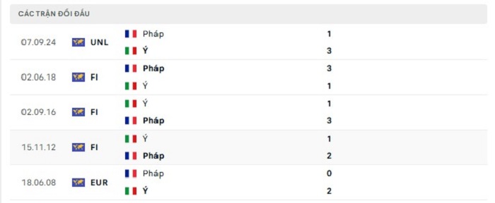 Phong độ gần đây Italia vs Pháp