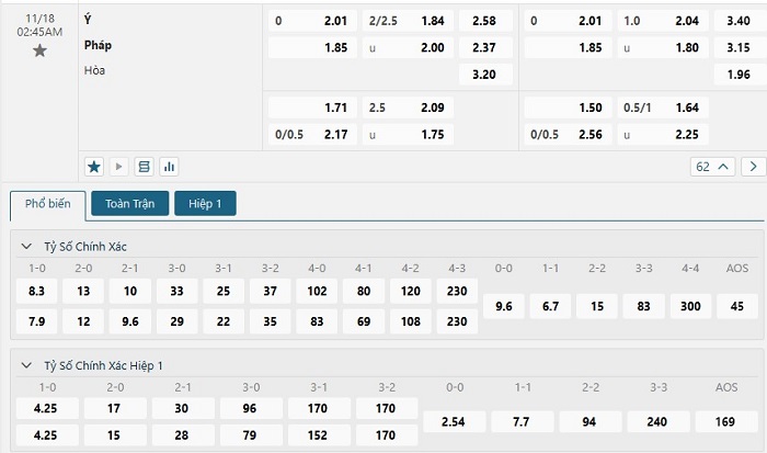 Soi kèo tỷ số Italia vs Pháp