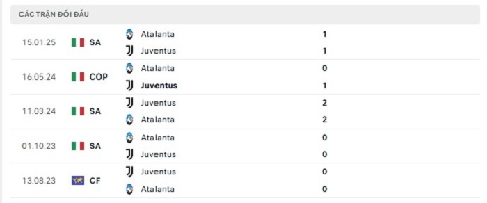 Phong độ gần đây Juventus vs Atalanta