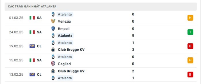 - Phong độ Atalanta