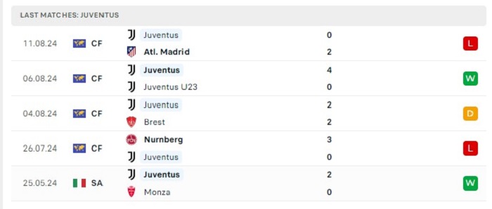 Phong độ gần đây Juventus vs Como