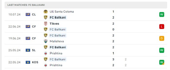 Phong độ gần đây KF Ballkani vs Santa Coloma