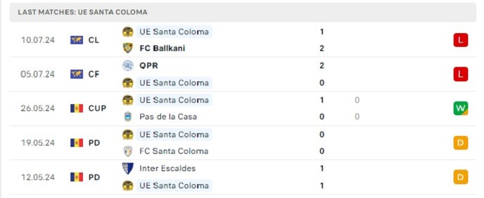 - Phong độ Santa Coloma