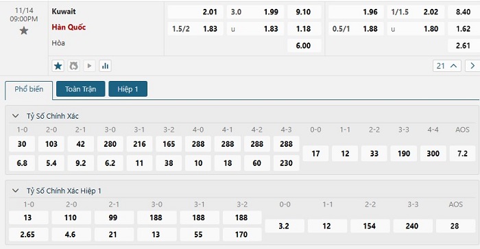 Soi kèo tỷ số Kuwait vs Hàn Quốc