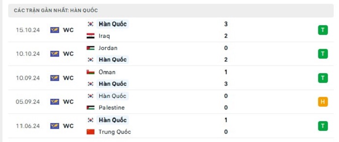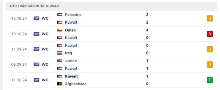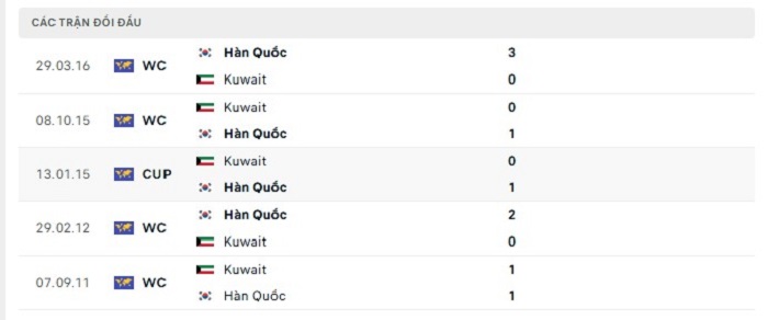 Phong độ gần đây Kuwait vs Hàn Quốc