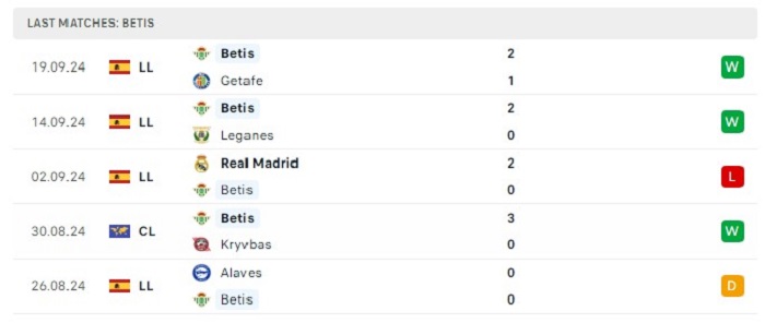 - Phong độ Real Betis