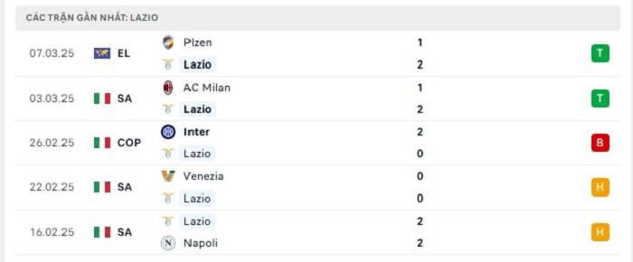 • Phong độ Lazio