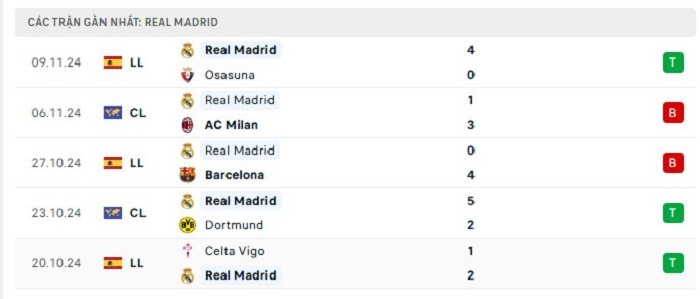 Bảng bóng đá trận đấu Leganes vs Real Madrid