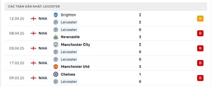 - Phong độ Leicester City